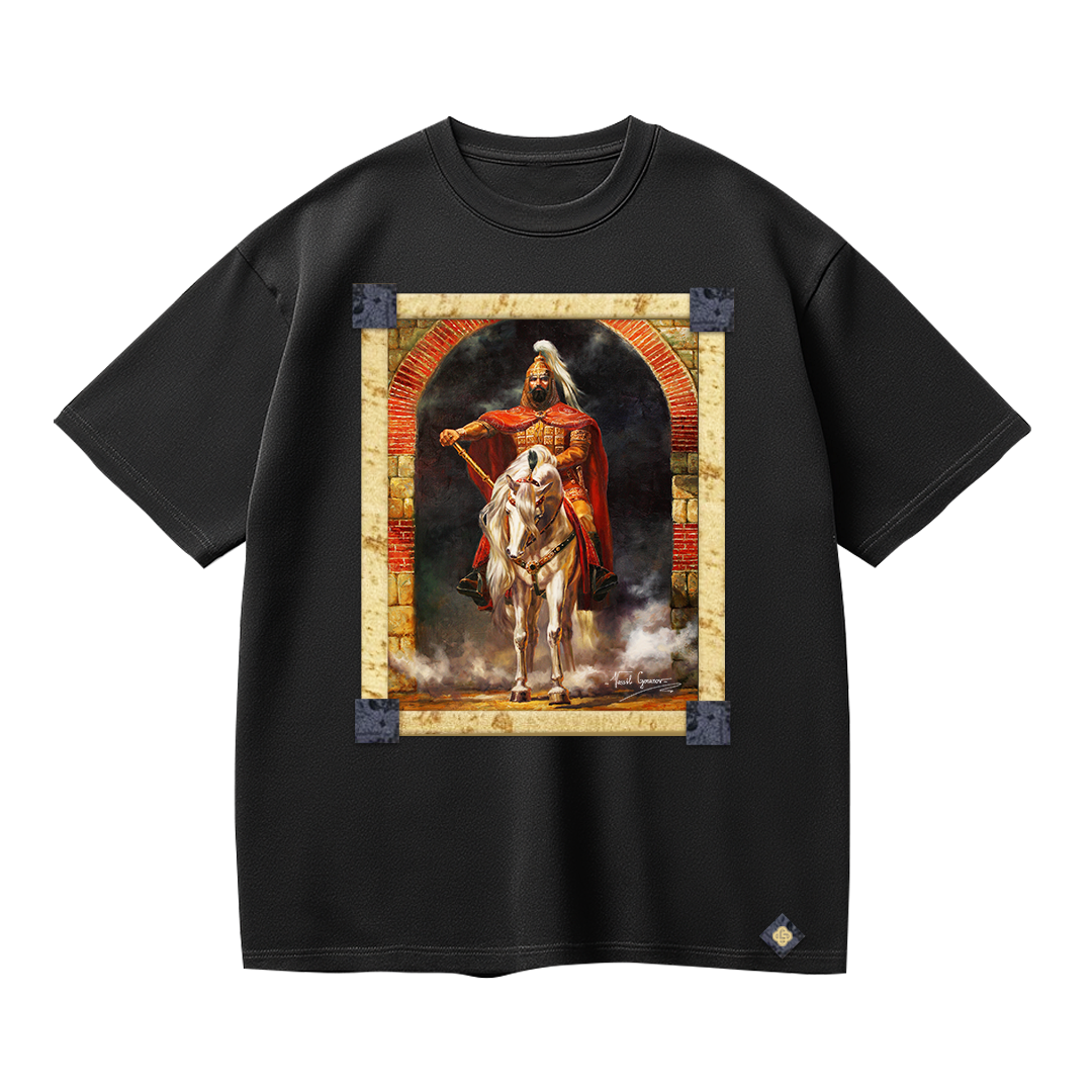 Тениска Хан Тервел е от базовата серия тениски "Великите българи" на GERONIMO - премиум изработка, вдъхновена от владетеля, спасил Европа от арабското нашествие. Тениска Хан Тервел е символ на сила и родова памет, създаден за ценители.