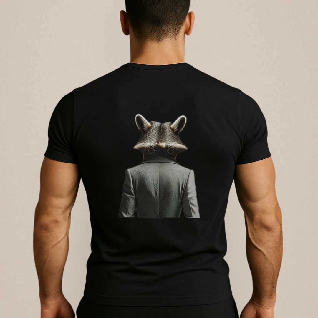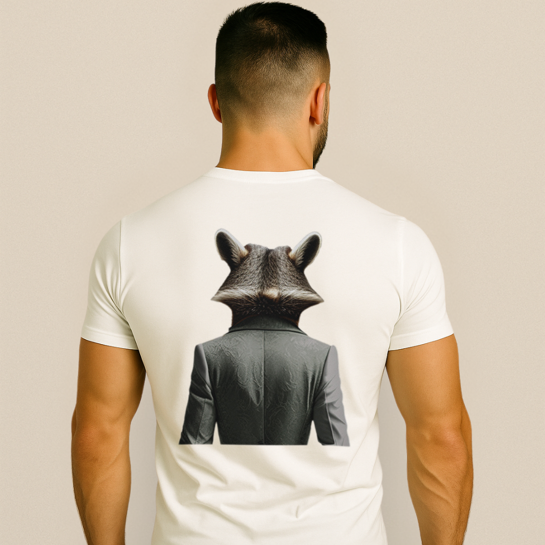 ✔ Финални детайли: Минималистичен фон, преден изглед на животното отпред и заден изглед на гърба на тениската.